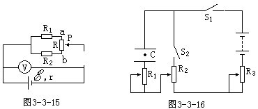 5.如图3-5-16所示电路,开关S1、S2原来都是闭合的,当滑动变阻器R1、R2、R3的滑片都刚好处于各自中点位置时,悬在平行板电容器中间的带电尘埃恰好处于静止状态,在其它条件不变的情况下,要使尘埃向下运动,可用的方法是 [ ]