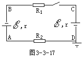 7.一复杂的直流电路的局部情况如图3-3-18所示,已知R1=5Ω, R2=1Ω,R3=3Ω;I1=1mA,I2=2mA,则图中电流表的示数为______mA,流过电流表的电流方向是由______到______.(用字母表示)