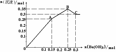 (4)将0.1mol明矾晶体与等物质的量的某无水盐晶体X混合后溶解于水中,所得溶液与上述溶液所含离子种类完全相同。若向该溶液中加入Ba(OH)2溶液,所得沉淀的物质的量与所加入Ba(OH)2的物质的量的关系如图Ⅱ: