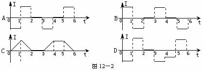 (2004年新老课程内蒙、海南、西藏、陕西等地区试题)一矩形线圈位于一随时间t变化的匀强磁场内,磁场方向垂直线圈所在的平面(纸面)向里,如图12-1所示.磁感应强度B随时间t变化的规律如图12-1所示.以I表示线圈中的感应电流,以图12-1中线圈上箭头所示方向的电流为正,则以下的I-t图12-2中正确的是