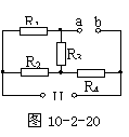 如图10-2-20所示的电路中,R1=4Ω,R2=10Ω,R3=6Ω,R4=3Ω,a、b