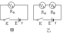 电池的电动势为E,内阻为r.先将电压表A串联接入电路中,如图甲所示记下其示数