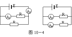 图10-4所示的两种电路中,电源相同,各电阻阻值相等,各电流表的内阻相等且不可忽略不计.电流表A1、A2、A3和A4读出的电流值分别为I1、I2、I3和I4.下列关系式中正确的是( )
