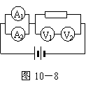 11.如图10-8所示,四个相同的电流表分别改装成两个安培表和两个伏特表.安培表A1的量程大于A2的量程,伏特表V1的量程大于V2的量程,把它们按图接入电路,则