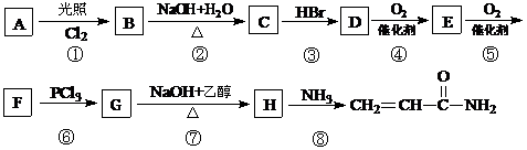 丙烯酰胺可由化合物A(分子式C3H6)经几步反应制得,反应过程如下: