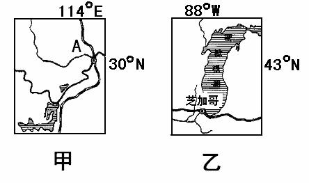(2)比较A城市与芝加哥两城市兴起和发展的交通区位条件的异同点。(5分)