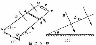 (1)由b向a方向看到的装置如图12-2-19(2)所示,请在此图中画出ab杆下滑过程中某时刻的受力示意图;