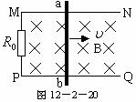 (2003年北京海淀区模拟题)如图12-2-20所示,MN和PQ是固定在水平面内间距L=0.2m的平行金属导轨,轨道的电阻忽略不计.金属杆ab垂直放置在轨道上.两轨道间连接有阻值为