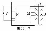 如图12-7所示的整个装置放在竖直平面内,欲使带负电的油滴P在两平行金属板间静止,导体棒ab将沿导轨运动的情况是( )