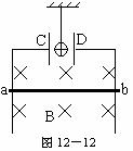 11、如图12-12所示,导轨与一电容器的两极板C、D连接,导体棒ab与导轨接触良好,当ab棒向下运动时,带正电的小球将向_____________板靠近.