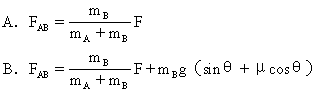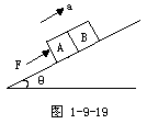 10.如图1-9-19所示,在倾角为θ的斜面上有A、B两个长方形物块,质量分别为mA、mB.在平行于斜面向上的恒力F的推动下,两物块一起向上做加速运动.A、B与斜面间的动摩擦因数为μ.设A、B之间的相互作用力为FAB,当它们一起向上加速运动过程中