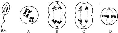35.在细胞正常分裂的情况下,雄性果蝇精巢中一定含有两个Y染色体的是( ) A.减数第一次分裂的初级精母细胞 B.有丝分裂中期的精原细胞 C.减数第一次分裂的次级精母细胞 D.有丝分裂后期的精原细胞 36.图(O)表示某精子,下列不属于该精子形成过程的细胞图是
