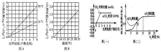 (3)影响图(一)中a曲线P点上下移动的主要外界因素是 ;如果P点是在氧气充足条件下测得的,则氧气浓度应大于 %。