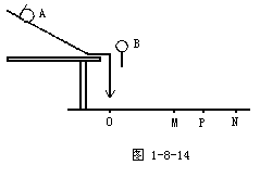 6.在验证碰撞中的动量守恒实验时,实验装置如图1-8-14所示,要求实验时所用的两个小球的半径r____,入射球的质量m1____被碰球的质量m2.在实验中需要使用的测量工具有______.若两球在碰撞中动量守恒,则满足关系式______(用题目和图中量表示).