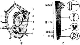 41.(7分)图甲是植物细胞亚显微结构模式图,图乙是小麦根尖结构模式图,据图回答(括号内填标号,横线上填名称)。