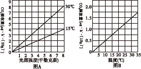 (1)当光照强度为8 klx(千勒克斯),温度为15℃的条件下,离体叶绿体的光合作用强度是 ___________ug/h/10g,在30℃条件下的叶肉细胞既不吸收CO2,也不释放CO2,此时的光照强度应为 。