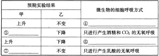 (2)③等量蒸馏水 ④只进行有氧呼吸 ⑤不变 ⑥同时进行有氧呼吸和产生酒精、CO2的无氧呼吸 ⑦不变