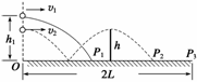 (1)若球在球台边缘O点正上方高度为h1处以速度v1水平发出,落在球台的P1(如图实线所示),求P1点距O点的距离s1;