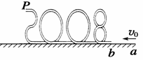18.(08·山东理综·24)某兴趣小组设计了如图所示的玩具轨道,其中“2008”四个等高数字用内壁光滑的薄壁细圆管弯成,固定在竖直平面内,(所有数字均由圆或半圆组成,圆半径比细管的内径大得多),底端与水平地面相切,弹射装置将一个小物体(可视为质点)以v0=5 m/s的水平初速度由a点弹出,从b点进入轨道,依次经过“8002”后从p点水平抛出,小物体与地面ab段间的动摩擦因数μ=0.3,不计其它机械能损失.已知ab段长L=1.5 m,数字“0”的半径R =0.2 m,小物体质量m =0.01 kg,g=10 m/s2.求: