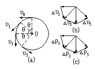 平抛运动中,由于物体的加速度g和合外力mg均恒定,所以在任意相等的时间间隔内,物体的速度和动量增量均相等,如图-1中(a)、(b)所示,匀速圆周运动中,由于物体的加速度a向和合外力F向均具备着“大小恒定、方向变化”的特征,所以在任意相等的时间间隔内,物体的速度和动量的增量相应也都具备着“大小相等、方向不同”的特征,如图9-2中(b)、(c)所示。