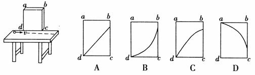 5.(08山东青岛5月模拟)如图所示,光滑水平桌面上,一小球以速度v向右匀速运动,它经过靠近桌边的竖直木板ad边前方时,木板开始做自由落体运动.若木板开始运动时,cd边与桌面相齐,则小球在木板上的投影轨迹是