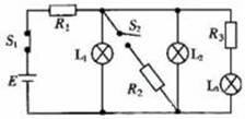 2(09年广东物理10).如图所示,电动势为E、内阻不计的电源与三个灯泡和三个电阻相接。只合上开关S1,三个灯泡都能正常工作。如果再合上S2,则下列表述正确的是