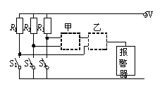 解析:题意只要有一个开关未闭合,报警器就会报警,结合或门的特点因此虚线框甲内应选用或门;虚线框乙内应选用或门。