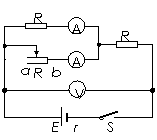 (2009届安徽省皖南八校高三第一次联考试卷)在如图所示的电路中,电源的电动势E恒定,内阻r = 1Ω,定值电阻R3=5Ω,电表均为理想的.当开关S 断开与闭合时,ab 段电路消耗的电功率相同.则下列说法正确的是(BC)