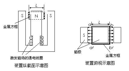 。如图所示,金属方框水平放在磁极的狭缝间,方框平面与磁场方向平行。设匀强磁场仅存在于相对磁极之间,其他地方的磁场忽略不计。可认为方框的