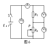 12(2009年北京海淀区高三上学期期末).在如图6所示电路中,电源电动势为E,内阻为r,电流表A、电压表V1、V2、V3均为理想电表,R1为定值电阻,R2为滑动变阻器。闭合开关S,当R2的滑动触头P向上滑动的过程中 (ACD )