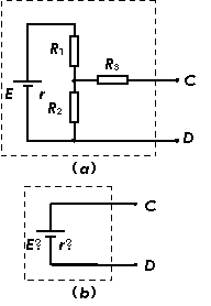 (3)图(a)中虚线框内的电路可等效为一个电源,即图(a)可等效为图(b),其等效电动势E′等于CD间未接入用电器时CD间的电压;若用导线直接将CD两点连接起来,通过该导线的电流等于等效电源的短路电流。则等效电源的内电阻r′是多少?