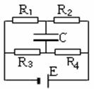 13.(2009年北京丰台区高三上学期期末).如图所示,电源电动势为E=10V,内阻r=1Ω,R1=3Ω,R2=6Ω,C=30μF。开关S断开时,电容器的电荷量为 C。闭合开关S,稳定后通过R1的电流为 A。