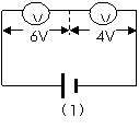 8(北京东城区2008年二模)如图(1)所示,电压表V1、V2串联接入电路中时,示数分别为6V和4V,当只有电压表V2接入电路中时,如图示(2)所示,示数为9V,电源的电动势为( C )