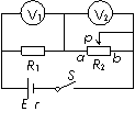 C. p向a移动,V1示数改变量的绝对值小于V2示数改变量的绝对值
