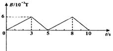 一个边长为6cm的正方形金属线框置于匀强磁场中,线框平面与磁场垂直,电阻为0.36Ω。磁感应强度B随时间t的变化关系如图所示,则线框中感应电流的有效值为( )