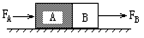 3.如图所示,在光滑水平面上放着紧靠在一起的A、B两物体,B的质量是A的2倍,B受到向右的恒力FB=2N,A受到的水平力FA=(9-2t)N,(t的单位是s,设水平向右为正方向)。从t=0开始计时,则( )