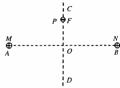 如图所示,在光滑绝缘水平面上,两个带等量正电的点电荷M、N,分别固定在A、B两点,O为AB连线的中点,CD为AB的垂直平分线。在CO之间的F点由静止释放一个带负电的小球P(设不改变原来的电场分布),在以后的一段时间内,P在CD连线上做往复运动。若( )