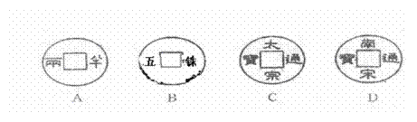 15.中华几千年的文明为我们留下了丰富的文物,懂一点文物鉴赏的本领,无疑会有益于我们准确掌握历史信息。请仔细观察和辨别下列铜币的拓片,哪一枚不是赝币