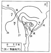 如图为美国某城市某年8月某日22时等温线图。读图回答13-15题。