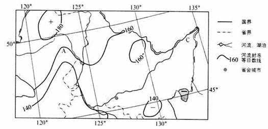 当地面或物体表面温度在0℃以下时,空气中的水汽会在其表面凝结成白色结晶,称为霜。一般把入秋后最早出现的一次霜叫初霜,而入春后最末出现的一次霜叫终霜。一年中,终霜后至初霜前的这段时间叫无霜期。下面是两地无霜期等值线图(单位:日)。读图回答24-25题。
