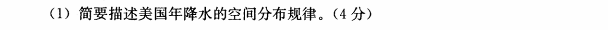 32. 读美国年等降水量线分布图(单位:mm),回答问题(15分)