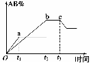 2AB在温度和压强改变条件下,产物AB的生成情况如图所示。a为500℃,b为300℃时情况,c为300℃时从时间t3开始向容器中加压的情况,则下列叙述正确的是
