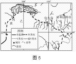 图5为“黄河干流部分河段水质状况分布图”,完成15-18小题。