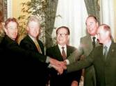 25、握手,是人类文明发展到一定阶段的产物世界舞台上“巨人”的握手,有时会引起国际社会的“震动”。对以下三幅图片的“握手”,解读正确的有