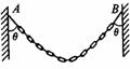 11.如图所示为一条匀质的能自由弯曲的铁链,两端系于等高的坚直墙上的A、B处,铁链总质量为m,静止时铁链两端切线方向与竖