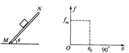 14.如图所示,物体放在粗糙的较长木板上,木板可以绕M端自由转动,若将其N端缓慢地抬起,木板与水平面的夹角为θ0时,物体所受木板的静摩擦力达到最大值,其值为fm,那么物体所受摩擦力f的大小随θ角怎样变化?请作出示 第14题图