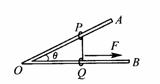 如图所示,水平放置的两固定的光滑硬杆OA、OB成θ角,在两杆上分别套以轻环P、Q,并用轻绳连接两环,现用恒力F沿OB方向拉环Q,当两环达稳定时绳子的张力多大?