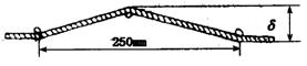 18.有些人,像电梯修理员、牵引专家和赛艇运动员,常需要知道绳或金属线中的张力,可又不能到那些绳、线的自由端去测量,一家英国公司现在制造出一种夹在绳上的仪表,用一个杠杆使绳子的某点有一个微小偏移量,如图所示,仪表很容易测出垂直于绳的恢复力,推导一个能计算绳中张力的公式,如果偏移为12mm时,恢复力为300N,计算绳中的张力。