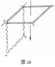 22.如图18所示,匀强磁场的磁感应强度为B,方向竖直向下,在磁场中有一个边长为L的正方形刚性金属框,ab边质量为m ,其它三边的质量不计。金属框的总电阻为R,cd边上装有固定的水平轴。现在将金属框从水平位置由静止释放,不计一切摩擦,金属框经时间t恰好通过竖直位置a¢b¢cd。求: