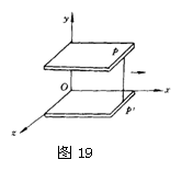 如图19所示,xOZ是光滑水平面,空间有沿+z方向的匀强磁场,磁感应强度为B。现有两块平行金属板,彼此间距为d,构成一个电容为C的平行板电容器,在两板之间焊一根垂直于两板的金属杆pp¢。已知两板和杆pp¢的总质量为m,若对金属杆pp¢作用一个沿+x方向的恒力F。试推导该装置匀加速运动时的加速度a的表达式(用B、C、d、m、等表示)